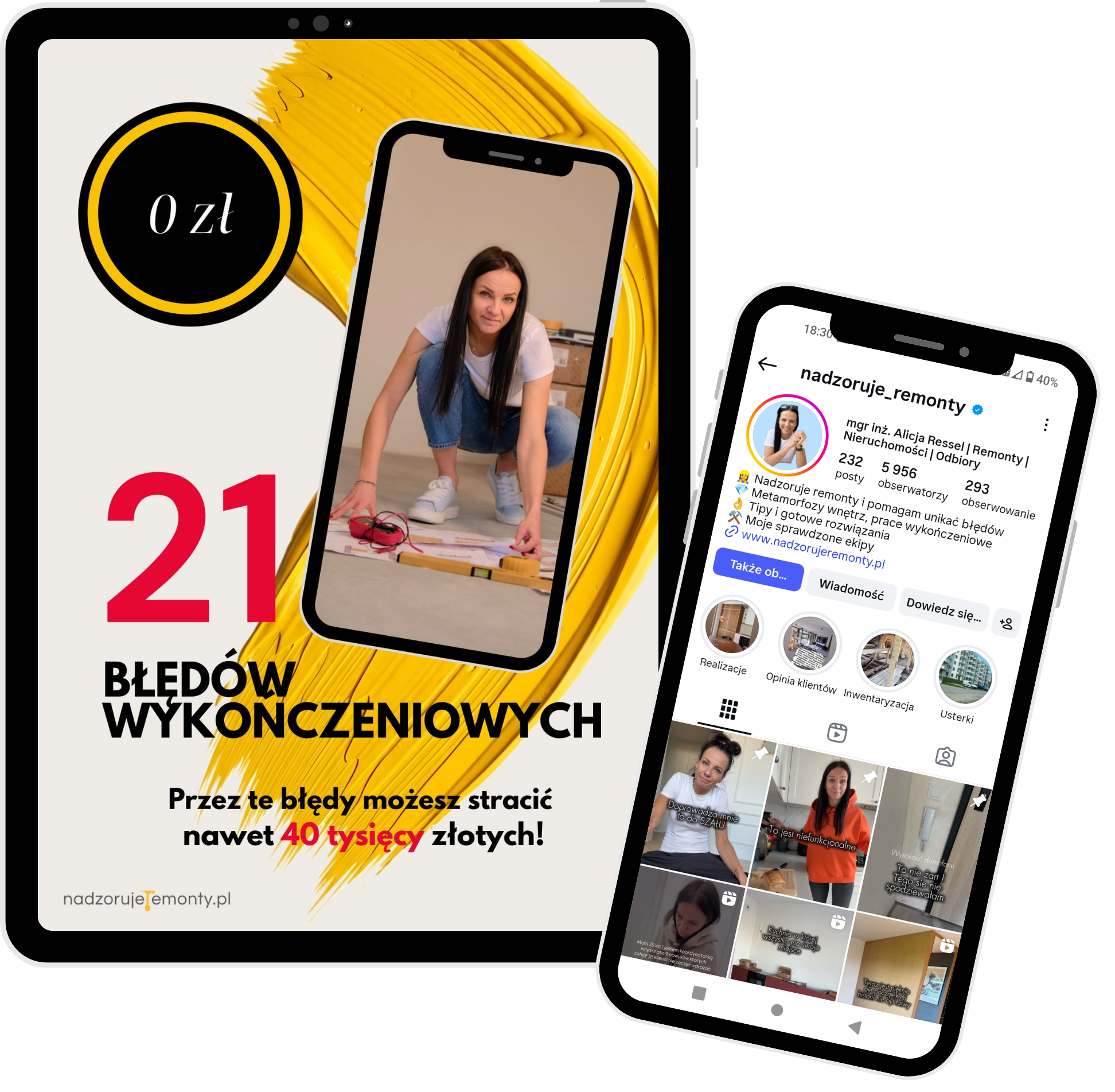 Na podstawie mojego długoletniego doświadczenia jako koordynatorka remontów – jestem tu dla Ciebie. Chcę Ci pokazać jak możesz zaoszczędzić dużo pieniędzy. Nie tylko podczas swojego remontu. Również podczas remontów Twoich klientów i bliskich. To nie jest kolejny zwykły ebook o ładnych wnętrzach. To ebook o błędach wykończeniowych, które realnie kosztują Twoje pieniądze i pieniądze Twoich klientów.